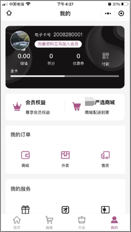 會員平臺支持會員申領(lǐng),會員卡充值,會員卡消費(fèi),會員專屬權(quán)益等